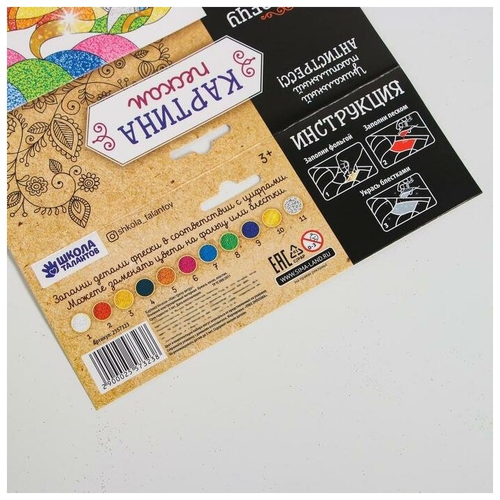 Фреска песком Школа талантов "Лошадь", 9 цветов песка по 4 гр, блестки, стека интересное: