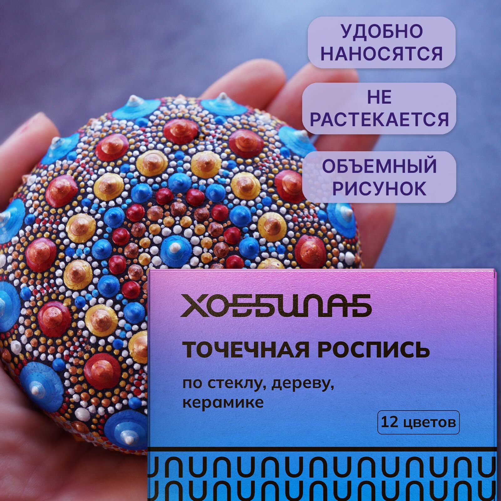 Набор акриловых красок Хоббилаб "Точечная роспись" для точечной росписи, глянцевые, 12 цв. интересное: