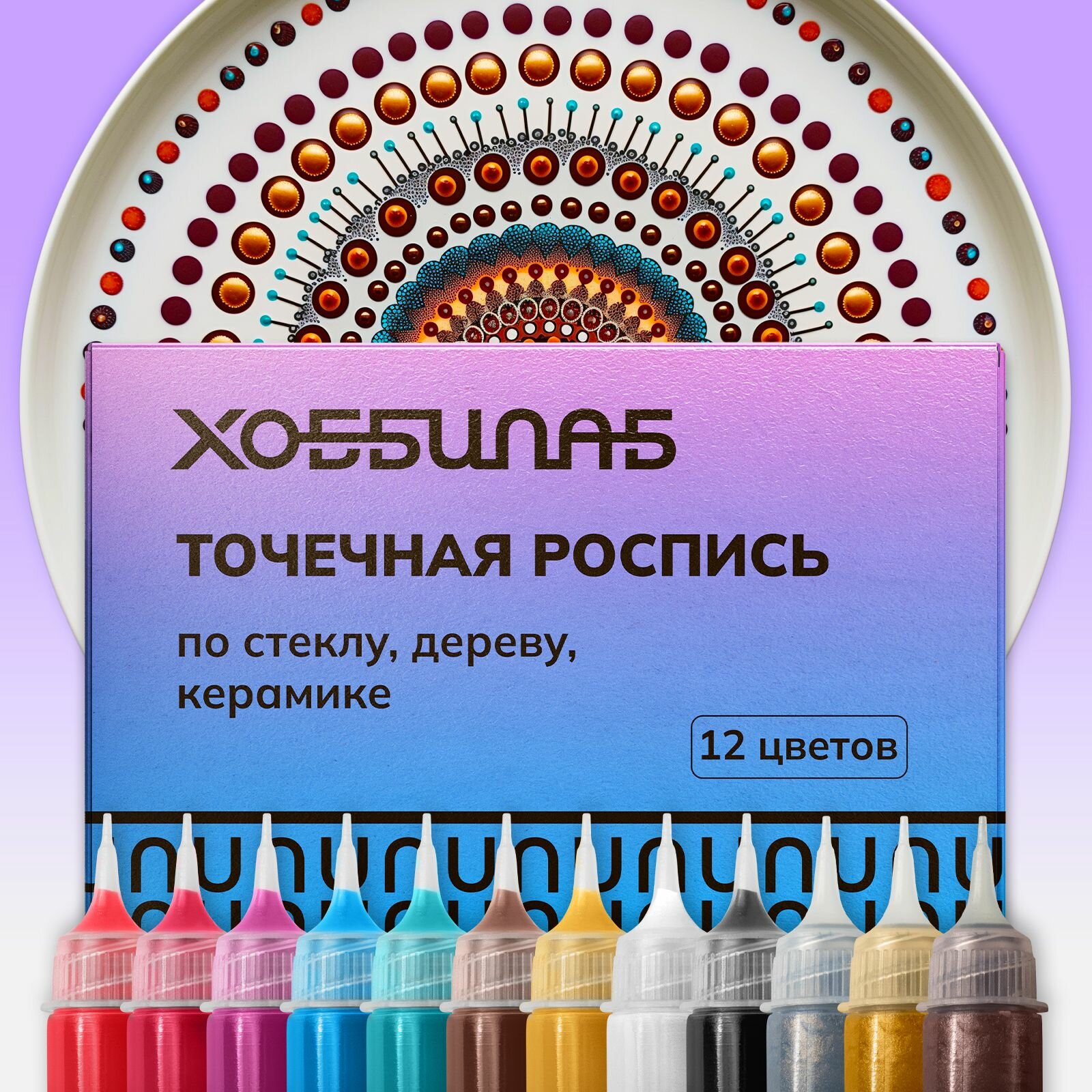 Купить Набор акриловых красок Хоббилаб "Точечная роспись" для точечной росписи, глянцевые, 12 цв.