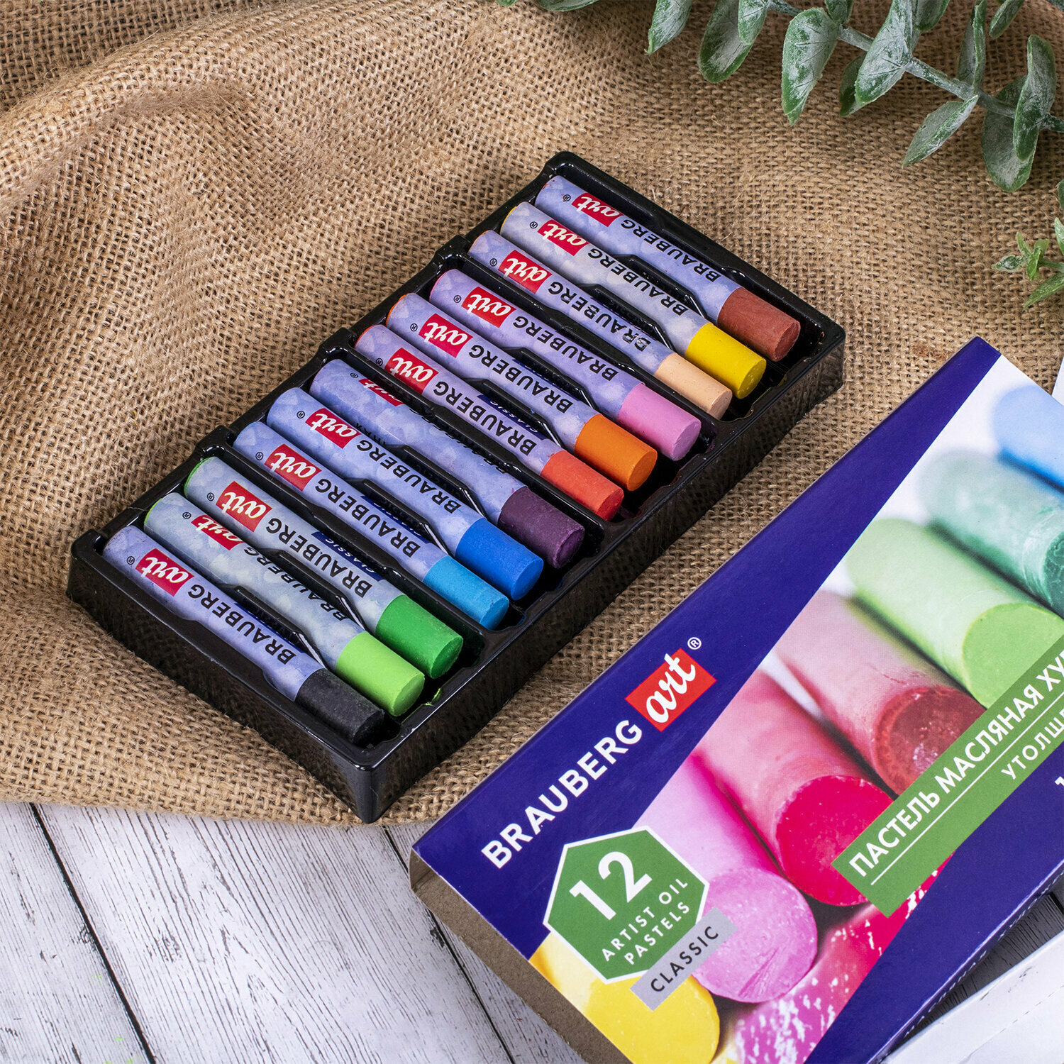 Комплект 22 шт, Пастель масляная художественная BRAUBERG ART CLASSIC, утолщенная, 12 цветов, круглое сечение, 181450