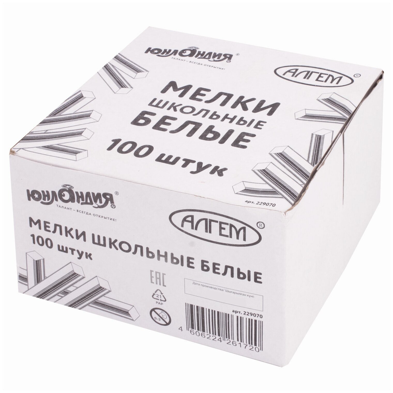 Купить Мел белый для доски школьный натуральный, набор 100 шт., квадратный, Юнландия, картонная упаковка, 229070