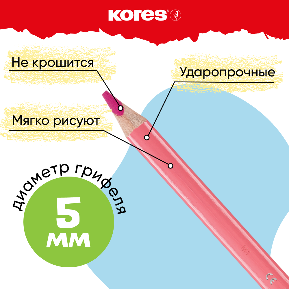 Карандаши цветные Kores, трехгранные, толщина грифеля 5 мм, набор 12 цветов, с точилкой интересное: