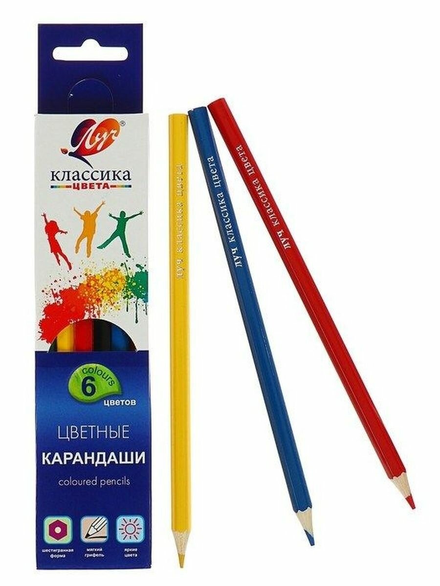 Карандаши цветные 6 цветов Луч "Классика" (L=178мм, d=3мм, 6гр) картонная упаковка (29С 1709-08), 8 уп.