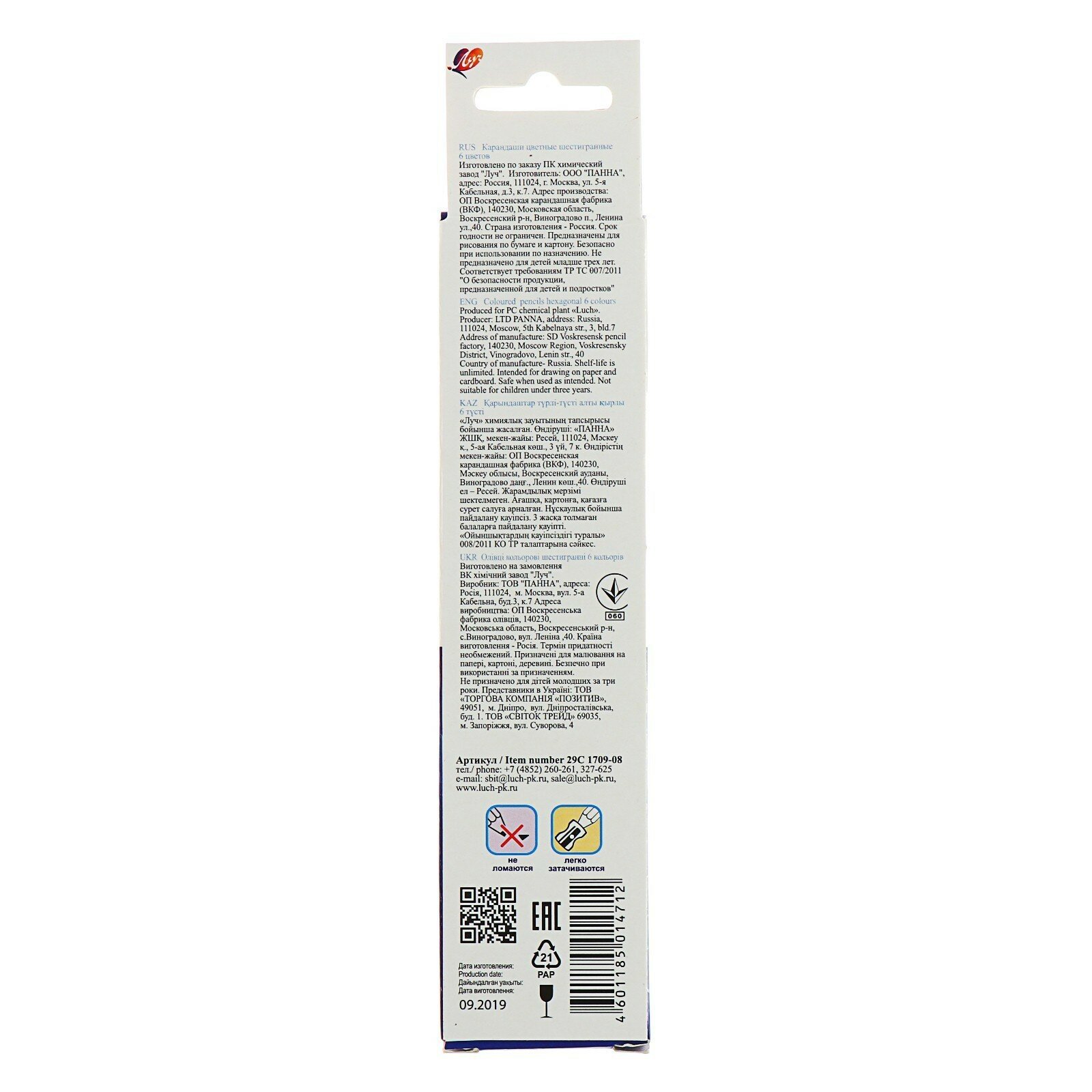 Карандаши цветные 6 цв, 6-гран, ЛУЧ Классика, 29С 1709-08