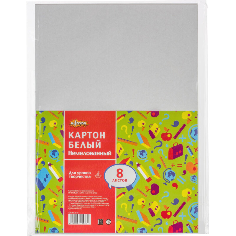 Картон белый немелованный №1 School Отличник (8 листов, А4), 45шт.