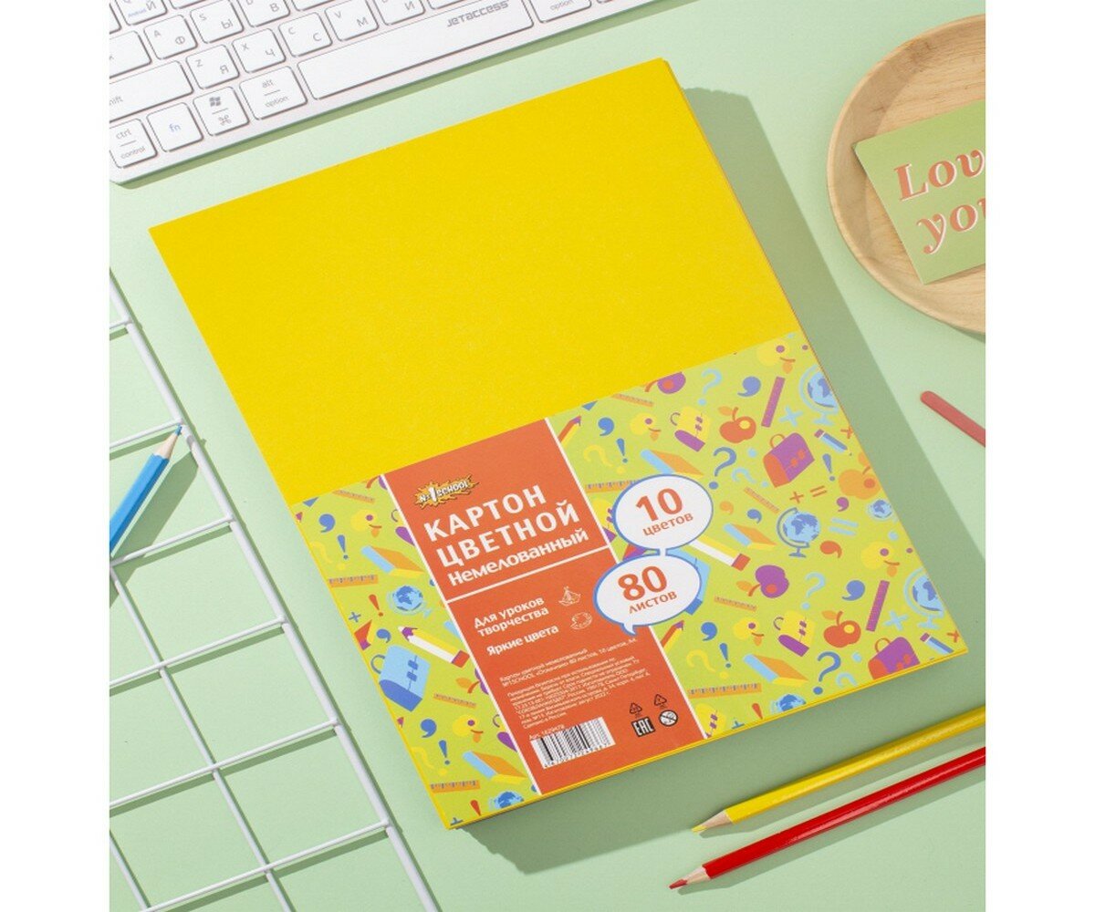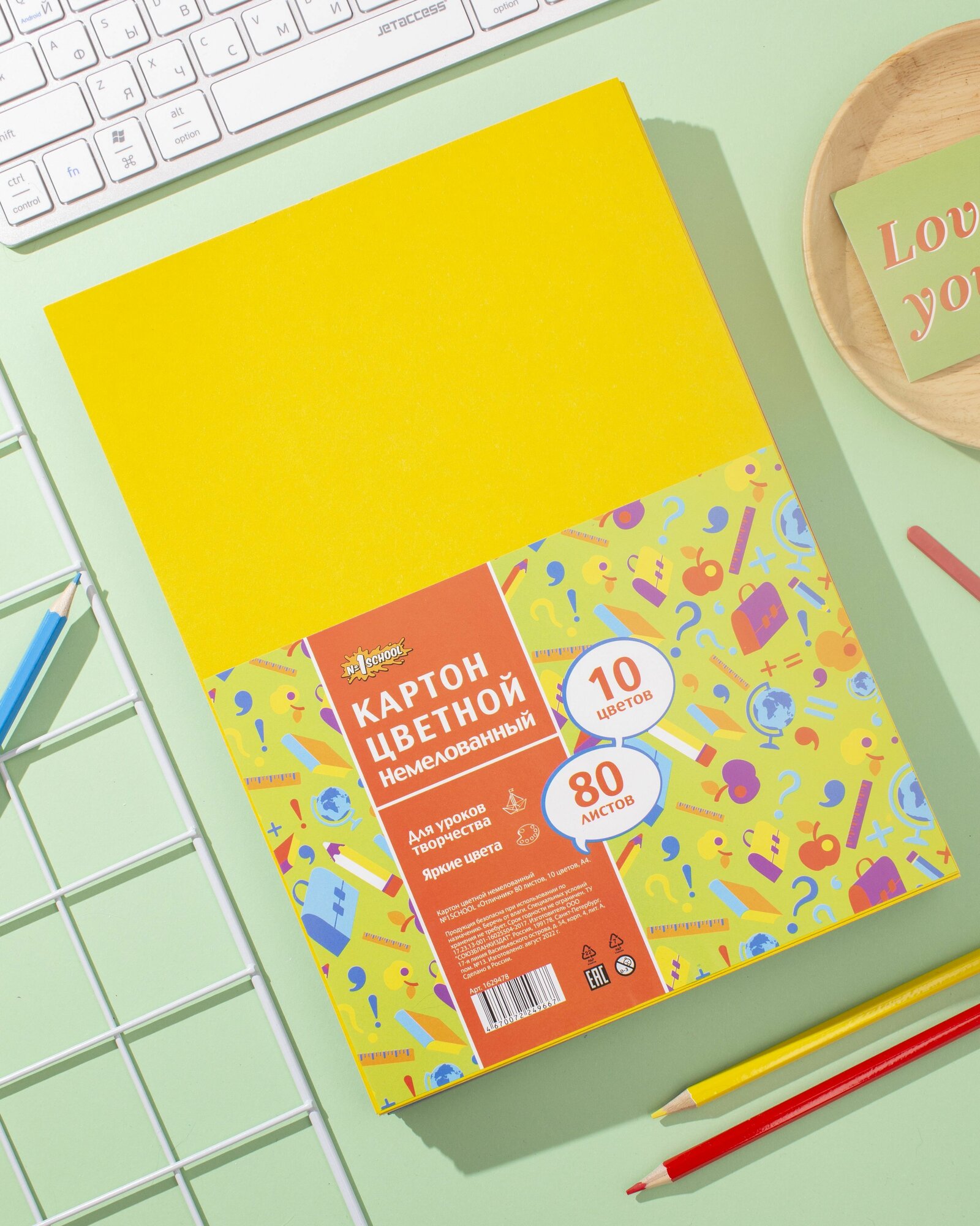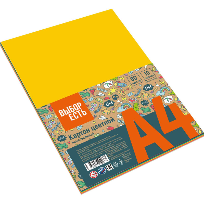Цветной картон Выбор есть, А4, немелованный, 80 листов, 10 цветов