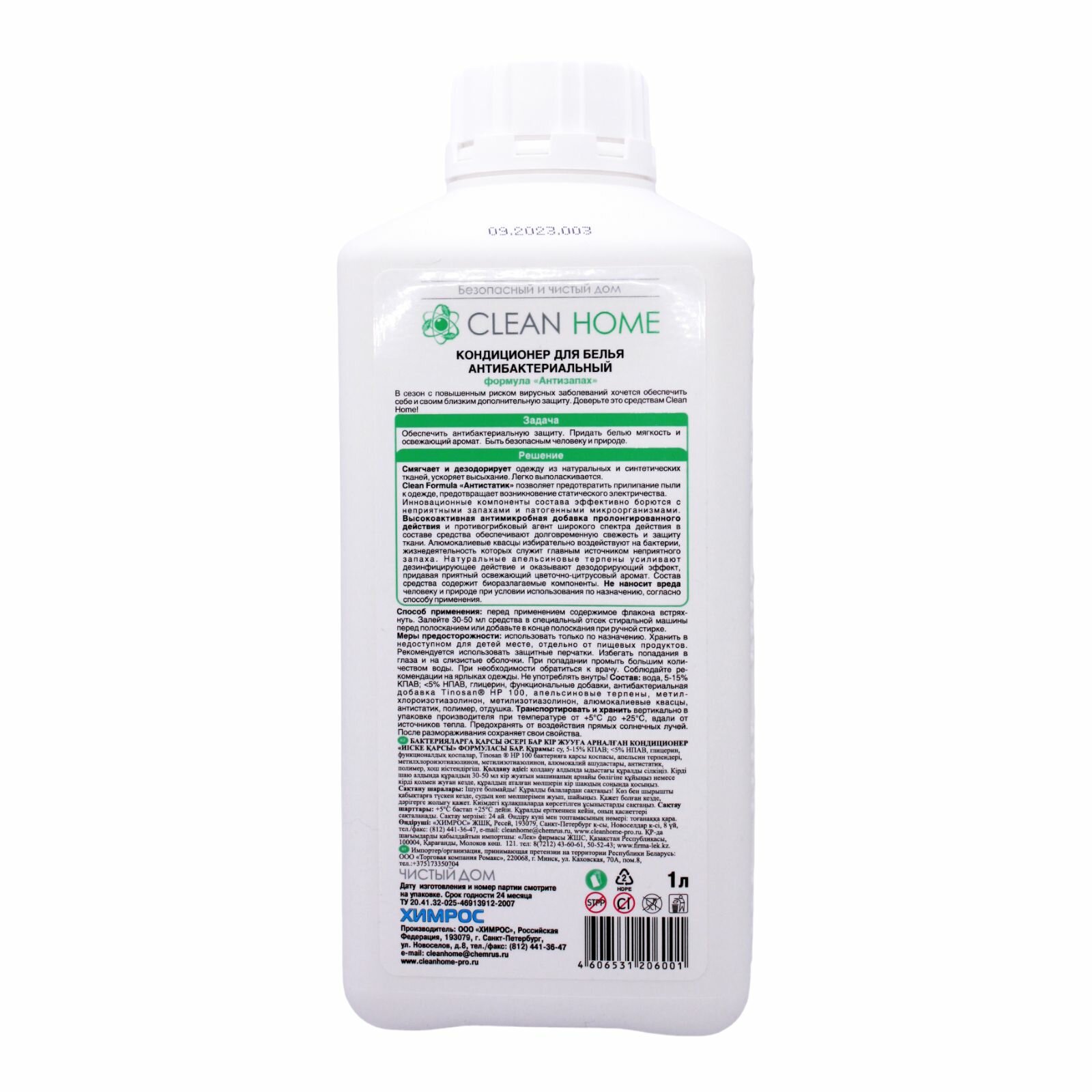 Купить Кондиционер ополаскиватель для белья Clean Home с антибактериальным эффектом 1 литр