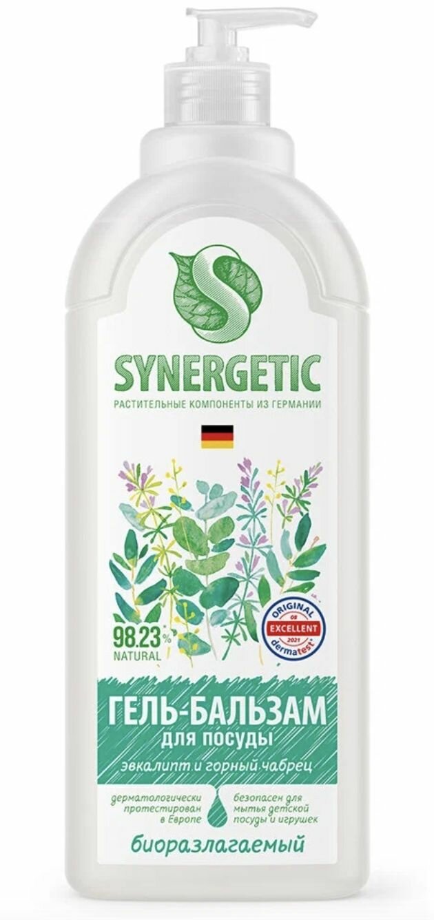 Гель-бальзам для мытья посуды SYNERGETIC Эвкалипт и горный чабрец, биоразлагаемый 1л 4607971453666