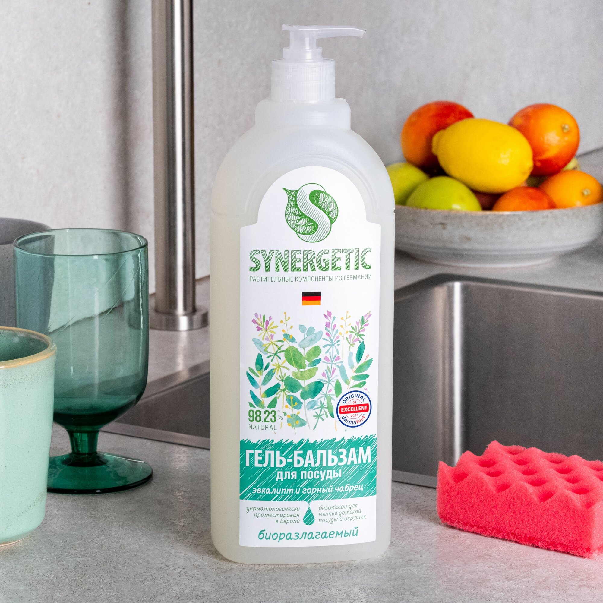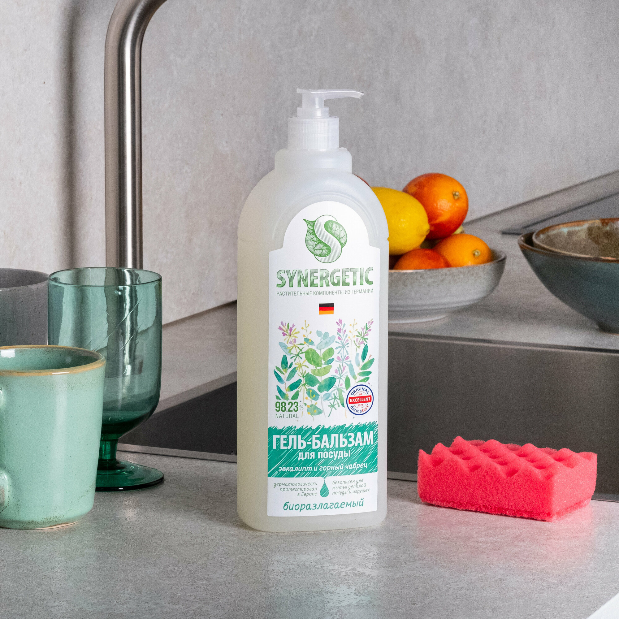 Купить Гель-бальзам для мытья посуды Synergetic Эвкалипт и Горный Чабрец, гипоаллергенный, 1 л