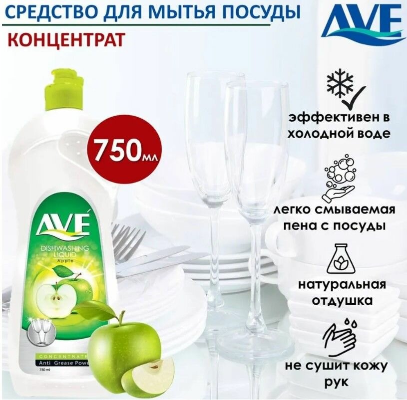 Купить AVE Cредство для мытья посуды Яблоко, концентрированное, 750 мл