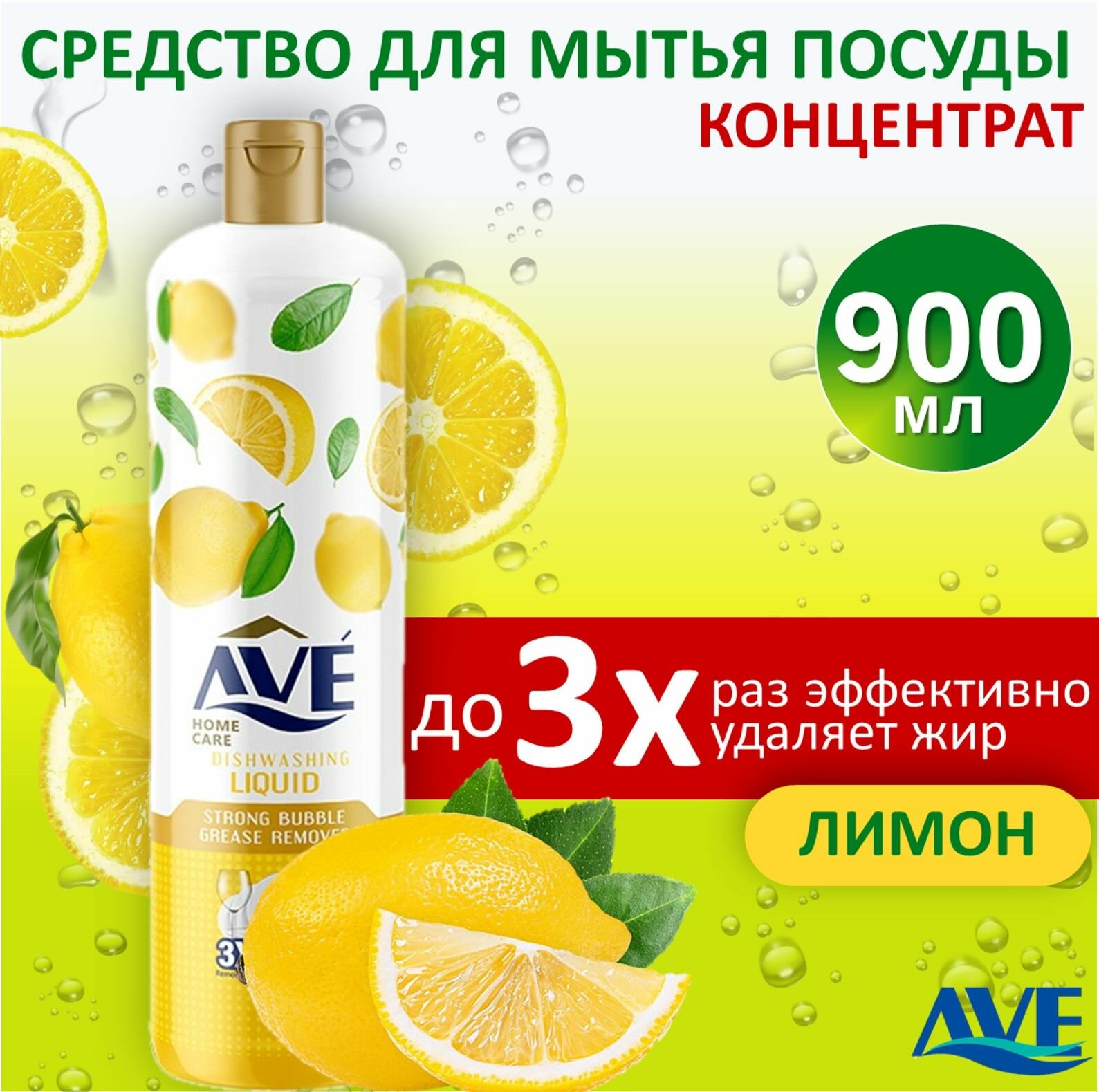 Купить Cредство для мытья посуды AVE, концентрированное, Лимон 900мл