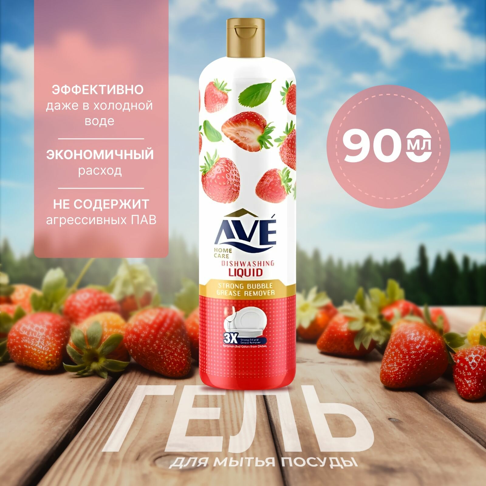 Cредство для мытья посуды AVE, концентрированное, Клубника 900мл