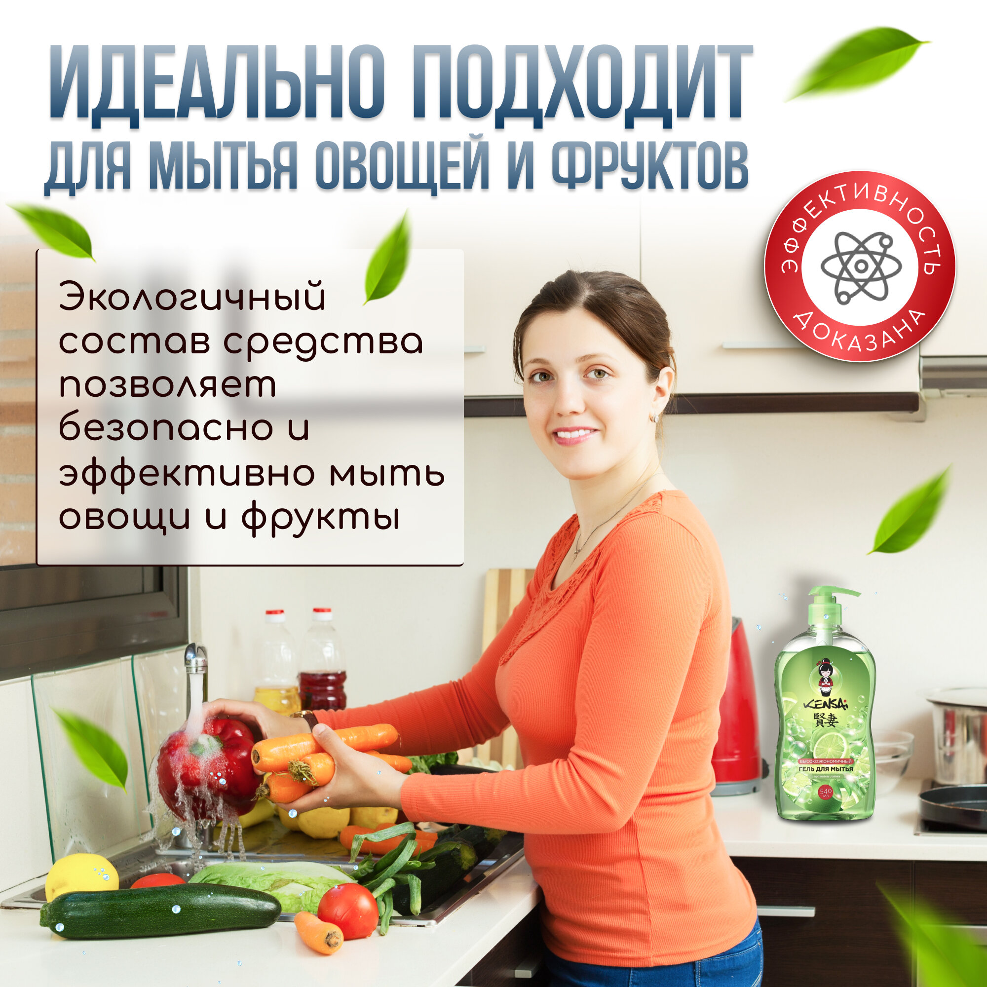 Гель для мытья посуды Kensai с ароматом лайма, концентрат, 1 л, дозатор