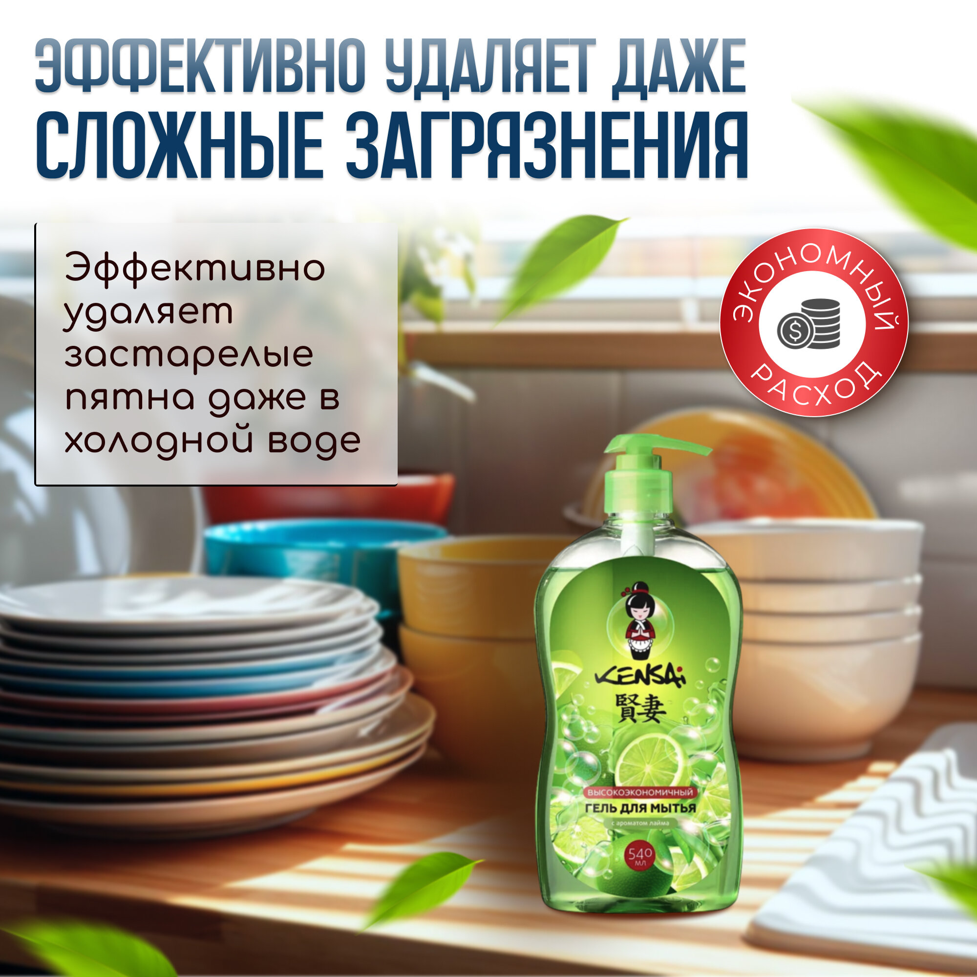 Купить Гель для мытья посуды Kensai с ароматом японского лайма, с дозатором, 540 мл.