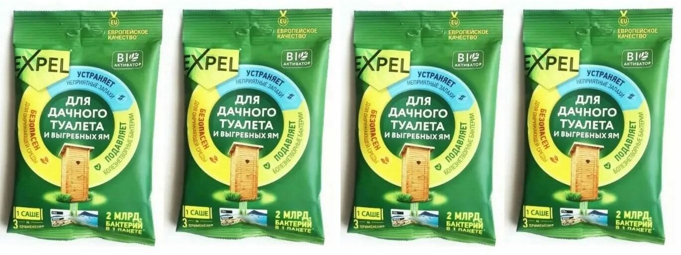 Биоактиватор для дачного туалета, септиков, выгребных ям 4 шт. х 250 гр Expel, биоактиватор для торфяных туалетов