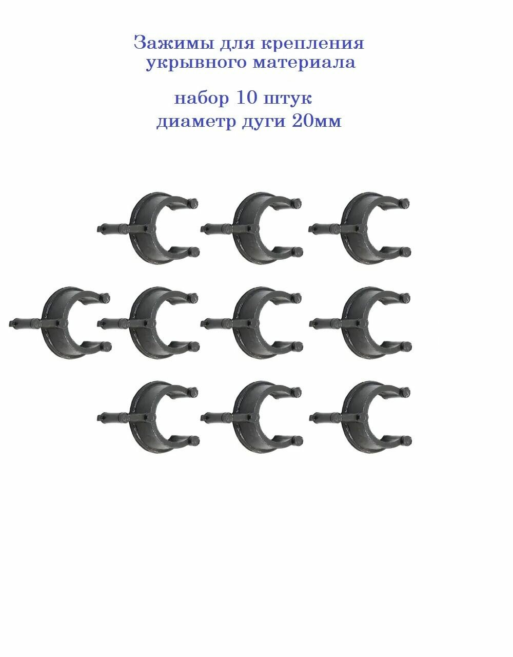 Купить Комплект зажимов для парника и теплицы, 10 шт (диаметр дуги 20 мм)/ Клипсы для парника на трубу 20 мм (набор 10 штук) / Зажимы для укрывного материала на теплицу