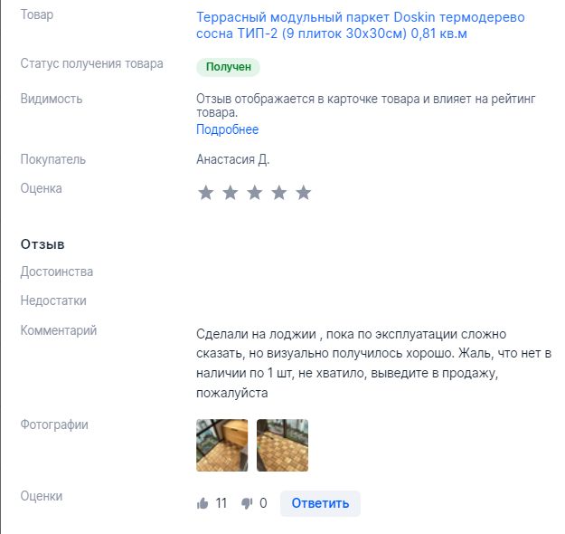 Ниже Вы можете прочитать отзывы на Террасный модульный паркет Doskin термодерево сосна (9 плиток 30х30см) 0,81 кв.м, ознакомится с подробными характеристиками, посмотреть интересные обзоры и фотографии на Террасный модульный паркет Doskin термодерево сосна (9 плиток 30х30см) 0,81 кв.м.