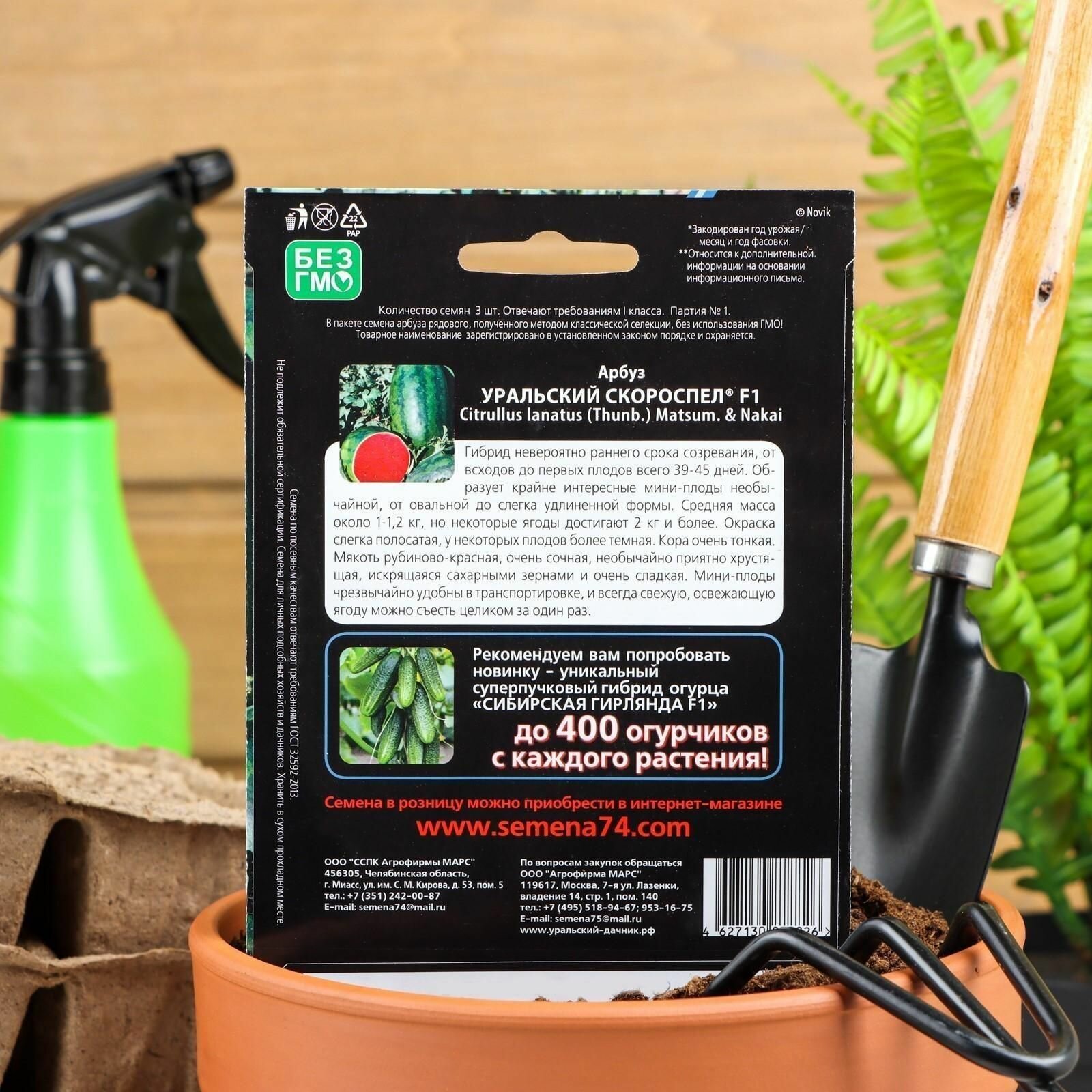 Семена Арбуз "Уральский Скороспел", F1, 3 шт, 1 упак.