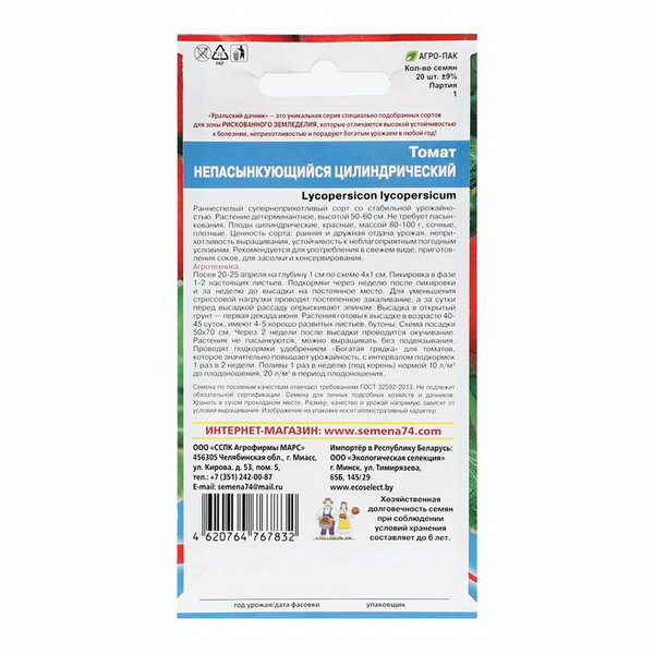 Семена Томат "Непасынкующийся Цилиндрический" массой 80-100г. Детерминантный,низкорослый, 20 шт. интересное: