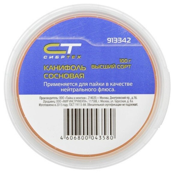 Канифоль "Сибртех" (сосновая, банка, 100 гр) интересное: