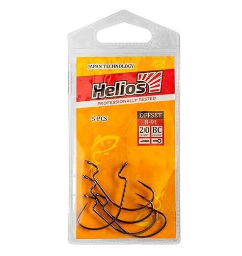 Крючок офсетный B-91 №2/0 Helios HS-B-91-2/0, черный хром, упаковка 5 шт интересное: