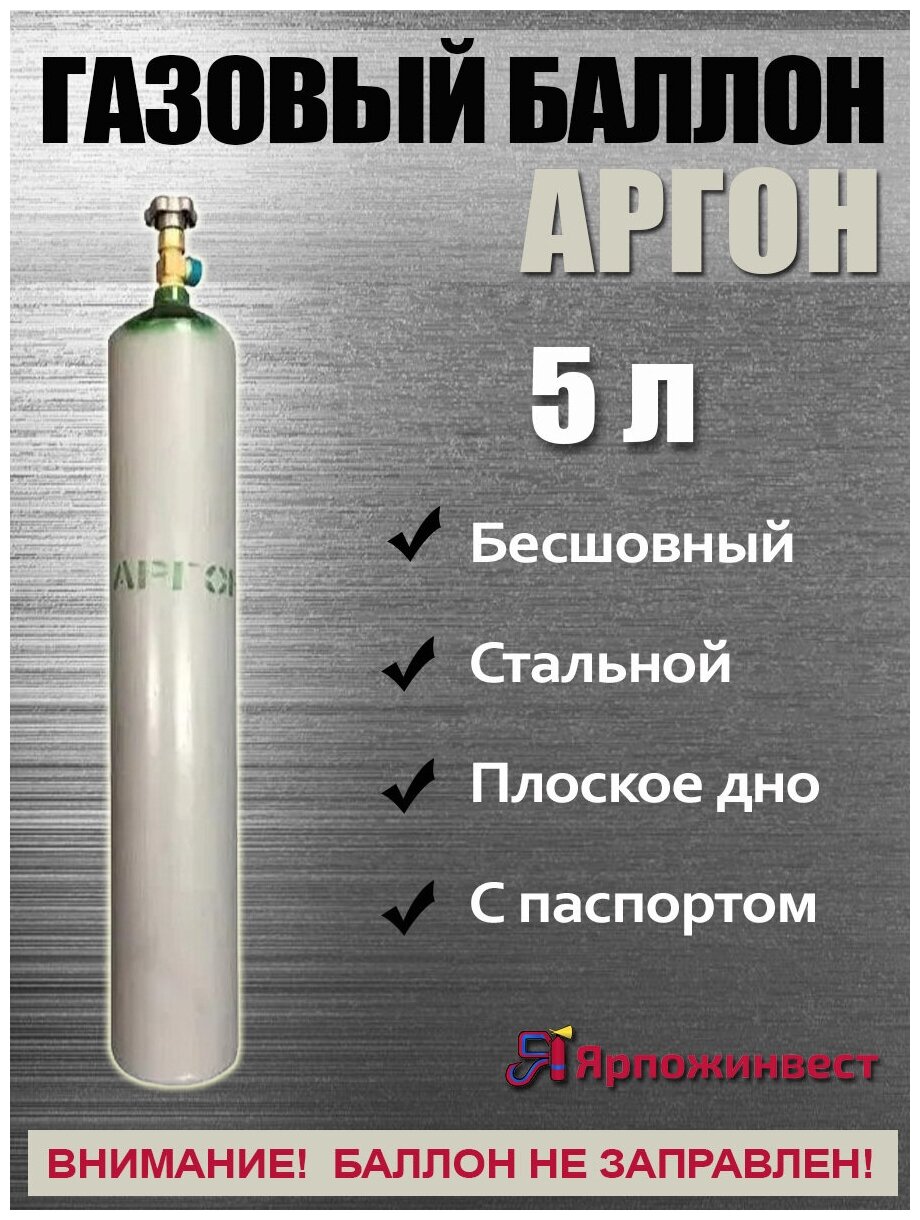Баллон аргон 5л Ярпожинвест, бесшовный/ Пустой без газа интересное: