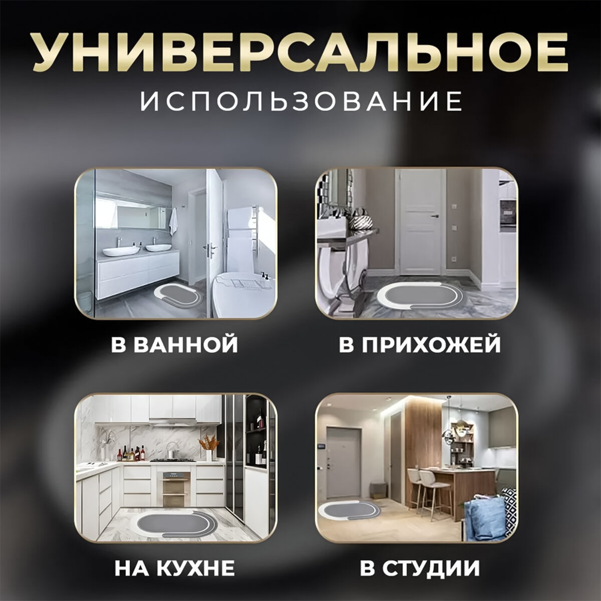 Коврик влаговпитывающий Ridberg AntiSlide, серый, 50x80 см интересное: