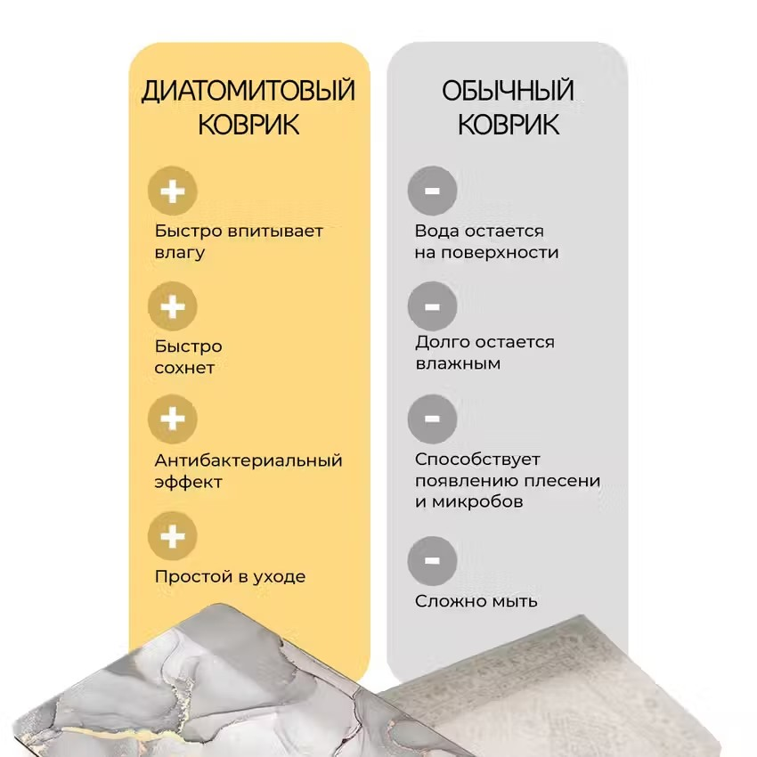 СохранитьДиатомитовый коврик для ванной Conflate антискользящий, 50*80 светло-серый мрамор интересное: