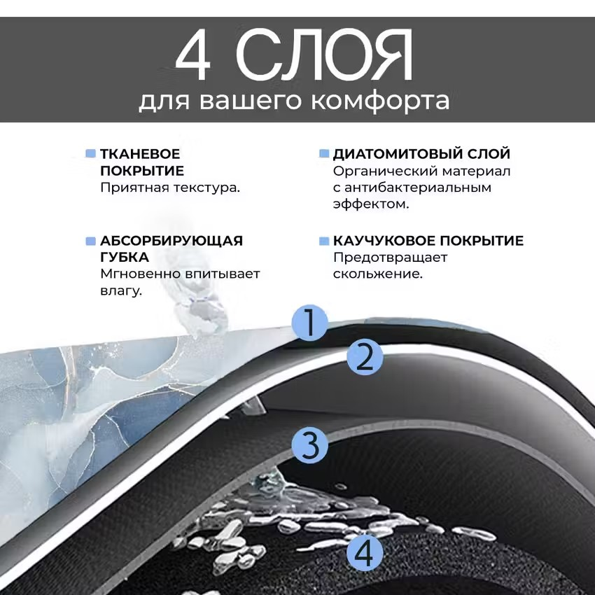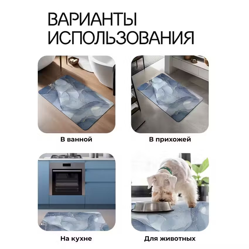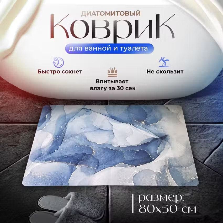 Диатомитовый коврик для ванной Conflate, антискользящий 50*80 светло-синий мрамор
