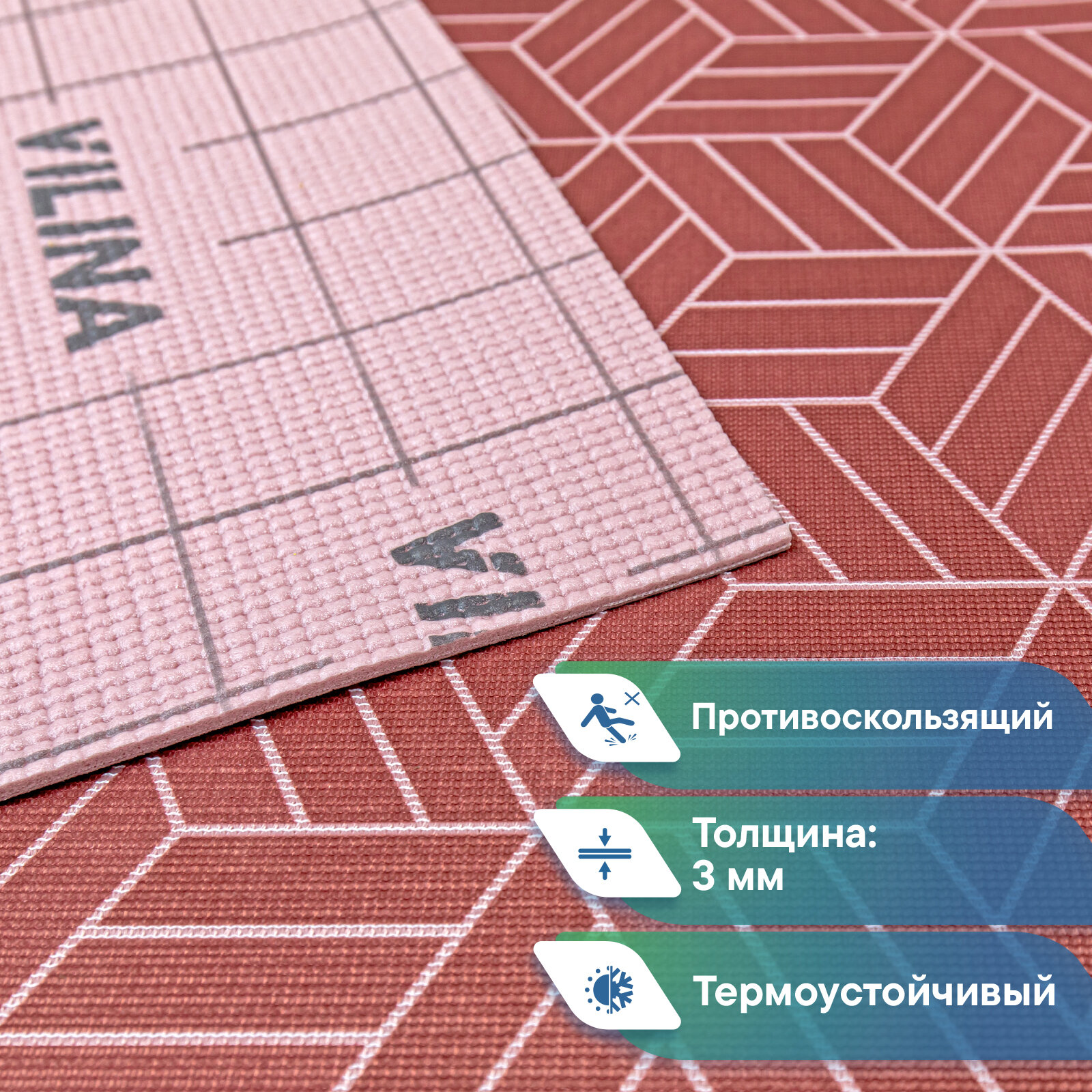 Купить Коврик безворсовый мягкий напольный VILINA противоскользящий для ванной для туалета в комнату 65х120 см "Элемент" бордовый