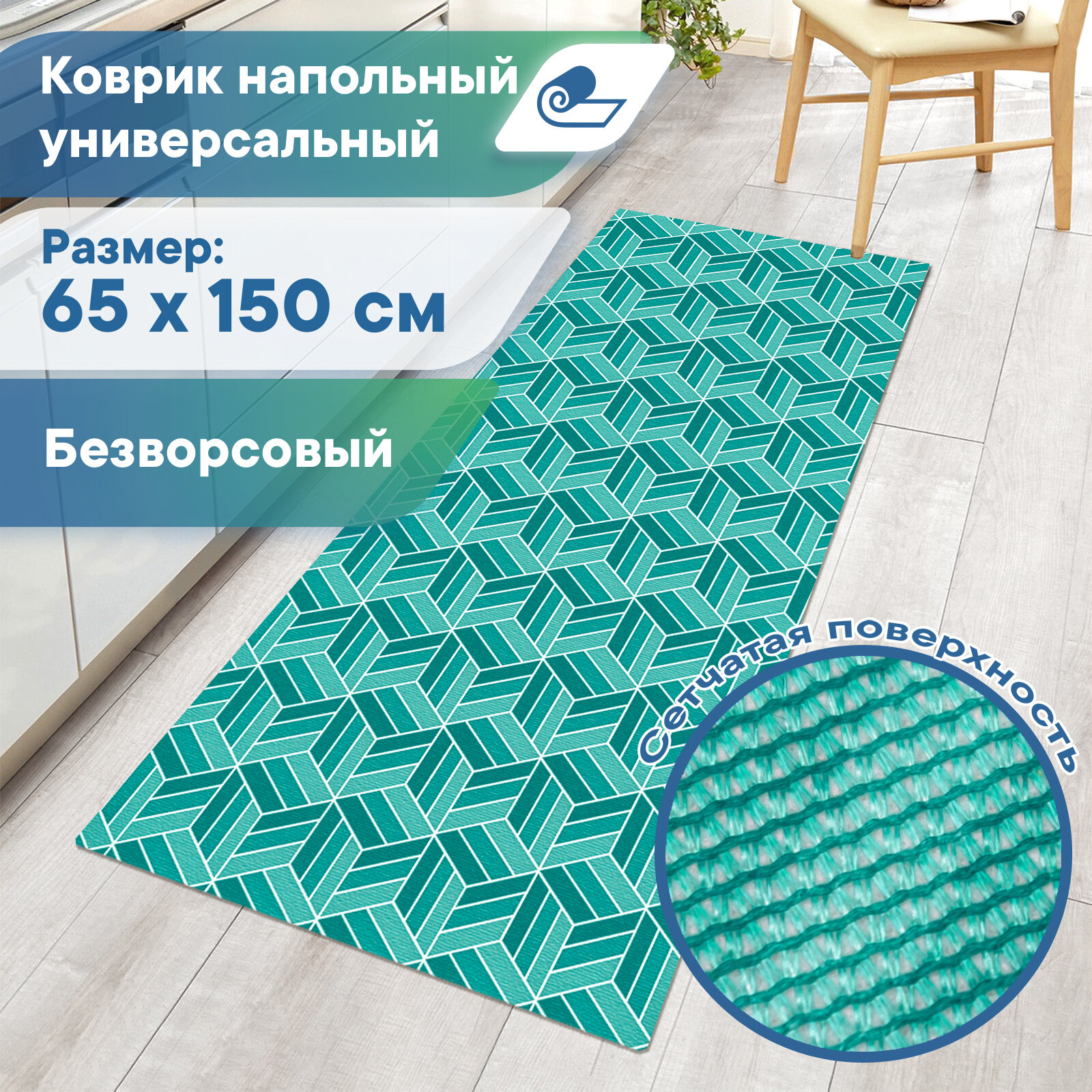 Купить Коврик напольный VILINA мягкий безворсовый для ванной для туалета в комнату противоскользящий 65х150 см "Элемент" зеленый