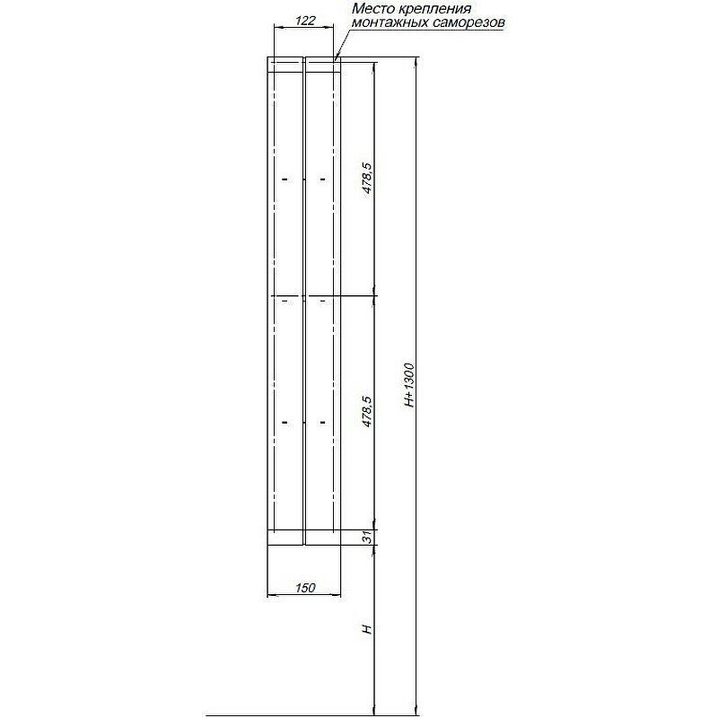 Полка Aquanet Магнум 150х1300х112 вертикальная цв. белый матовый 302239