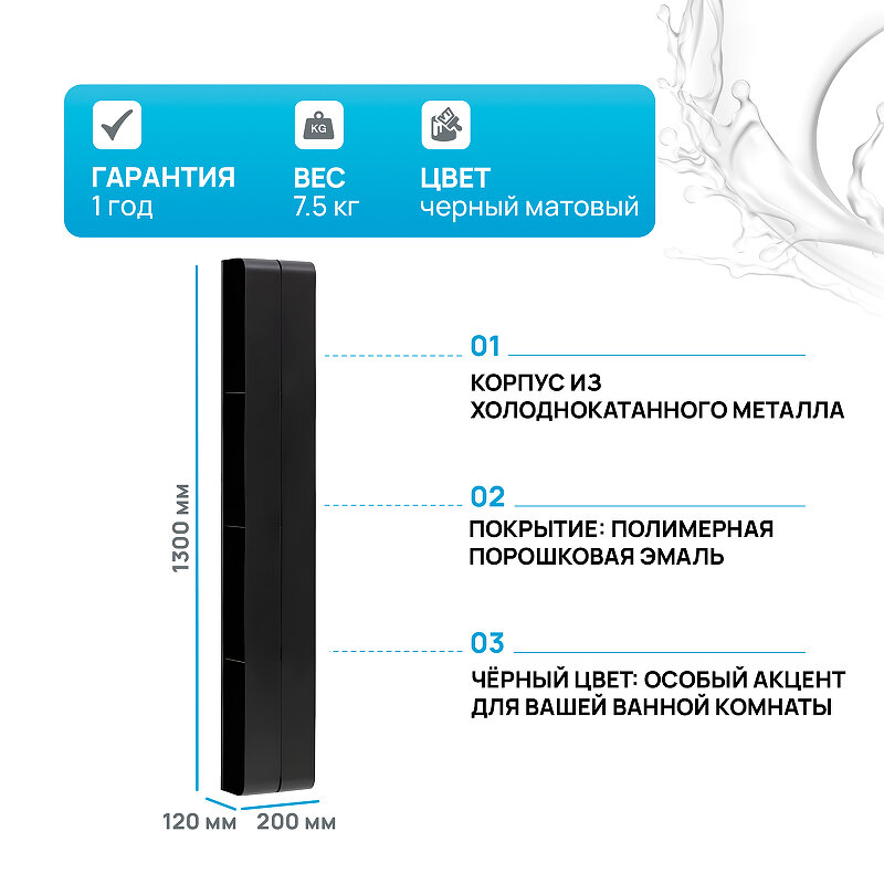 Полка Aquanet Магнум 00302228 20x130 черная матовая, вертикальная
