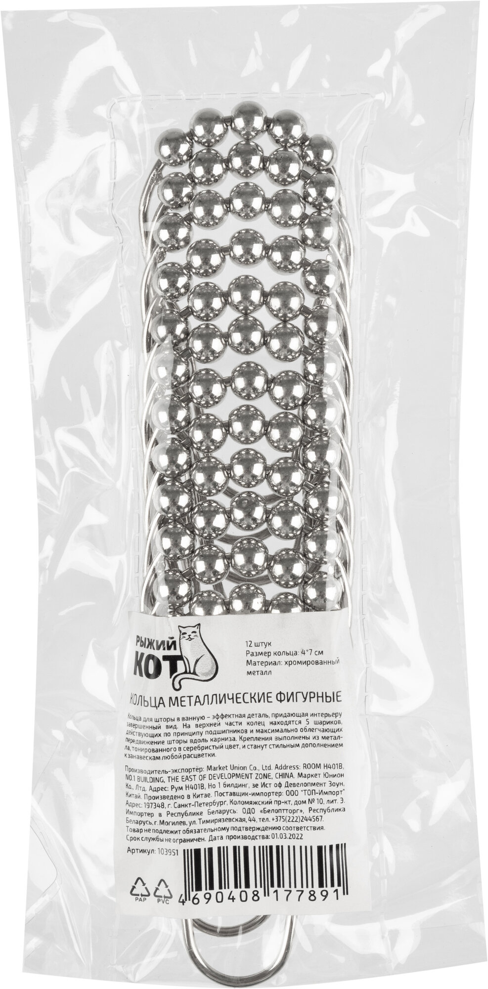Кольца для штор в ванную Рыжий кот, хром, 12 шт