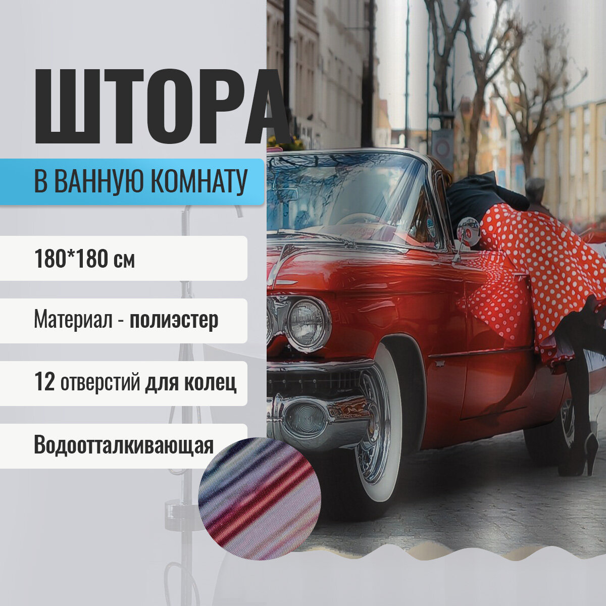 СохранитьШторка в ванную комнату BRIMIX фотопечать - девушка и автомобиль, код: 02-21 (без колец) интересное: