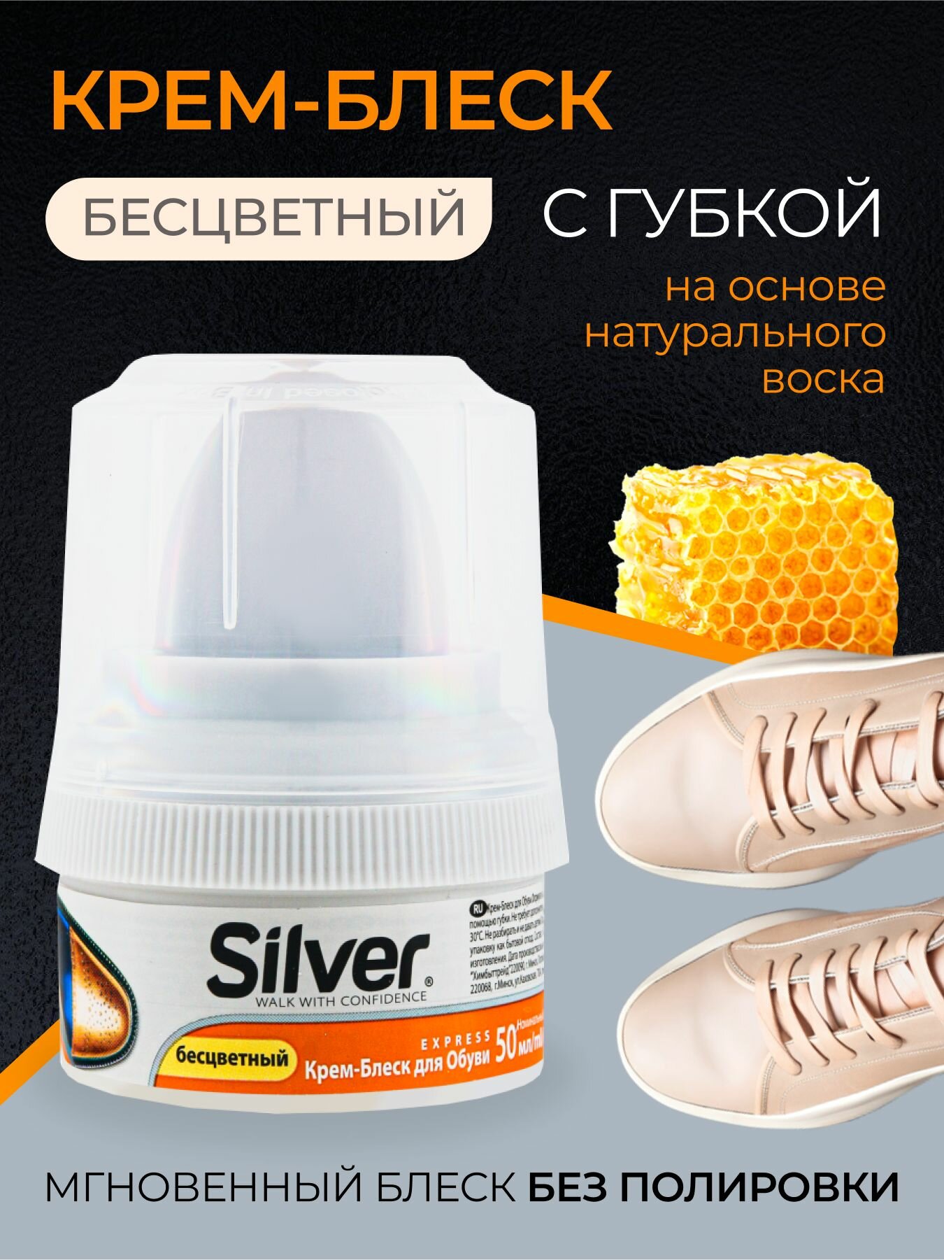 Крем для обуви Silver Express, бесцветный, для гладкой и искусственной кожи, натуральный воск, 50 мл