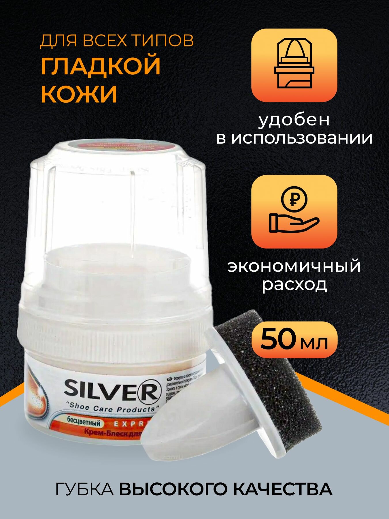 Крем-блеск для обуви Silver, бесцветный, 50 мл