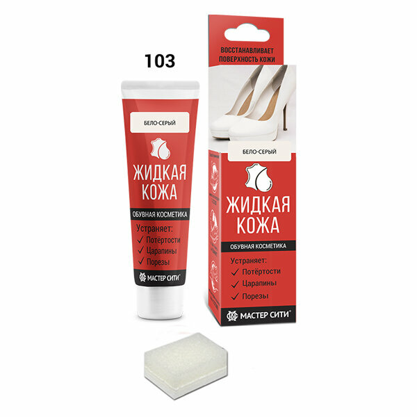 Купить Жидкая кожа "Мастер сити ОК" для ремонта кожи 103 серо-белый, туба 30 мл (красная коробка) со спонже