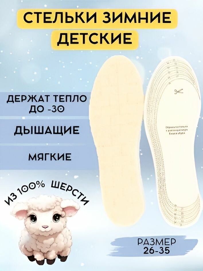 Купить Стельки детские зимние, универсальный размер 26-35, шерсть + латекс