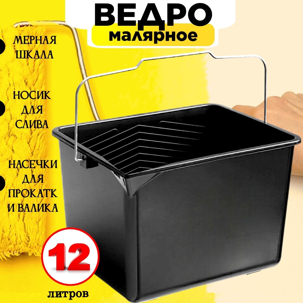 Ведро 12 литров 35 х 25 см, для краски ,черное квадратное с ручкой, пластик