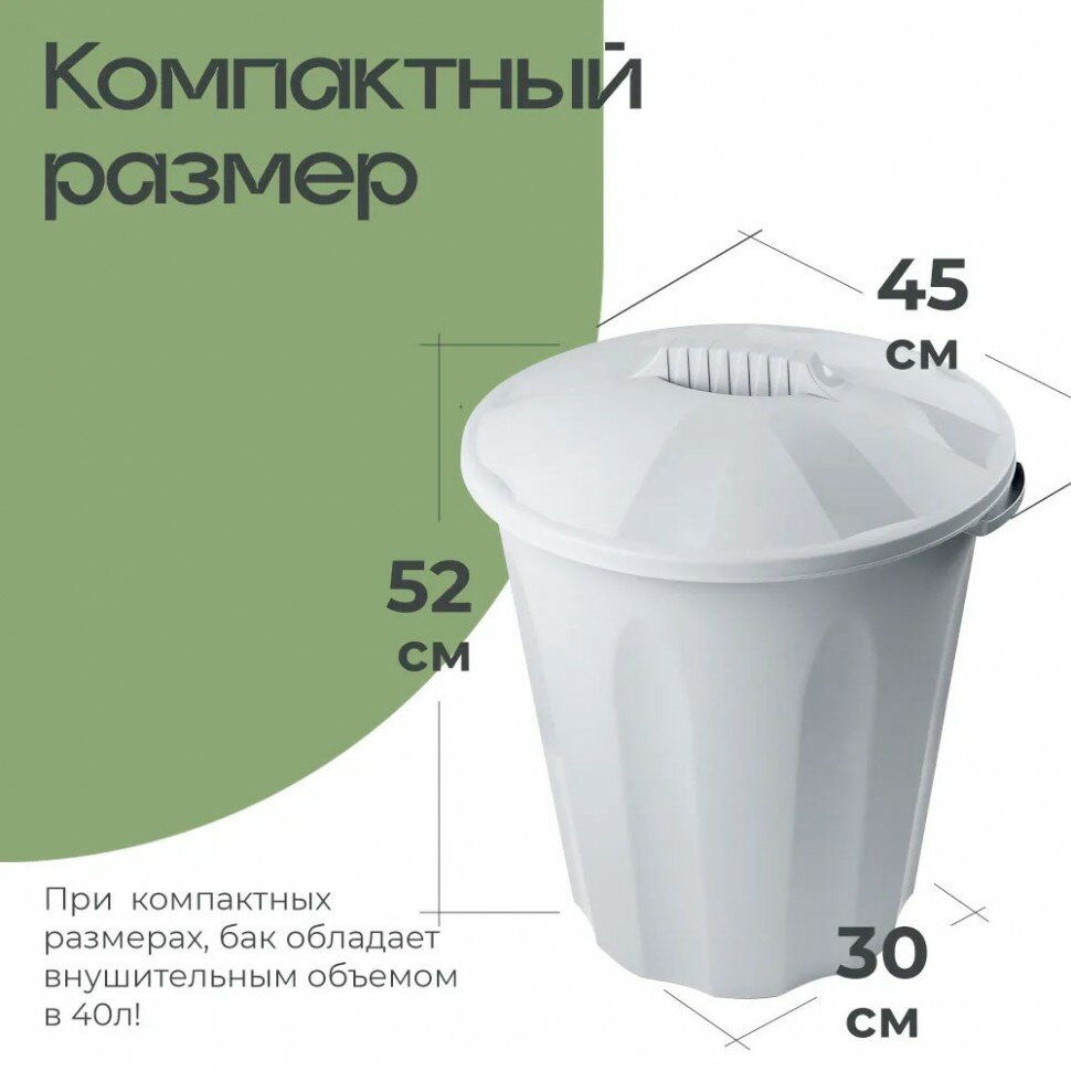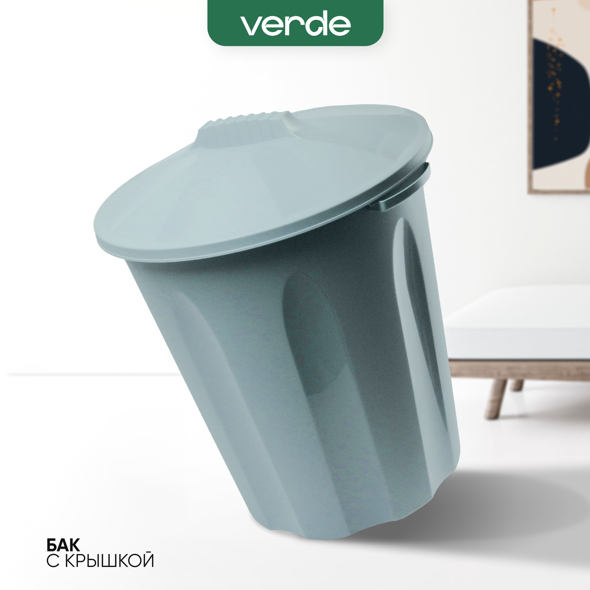 Купить Бак для мусора пластиковый 40 литров Verde с крышкой, цвет серый