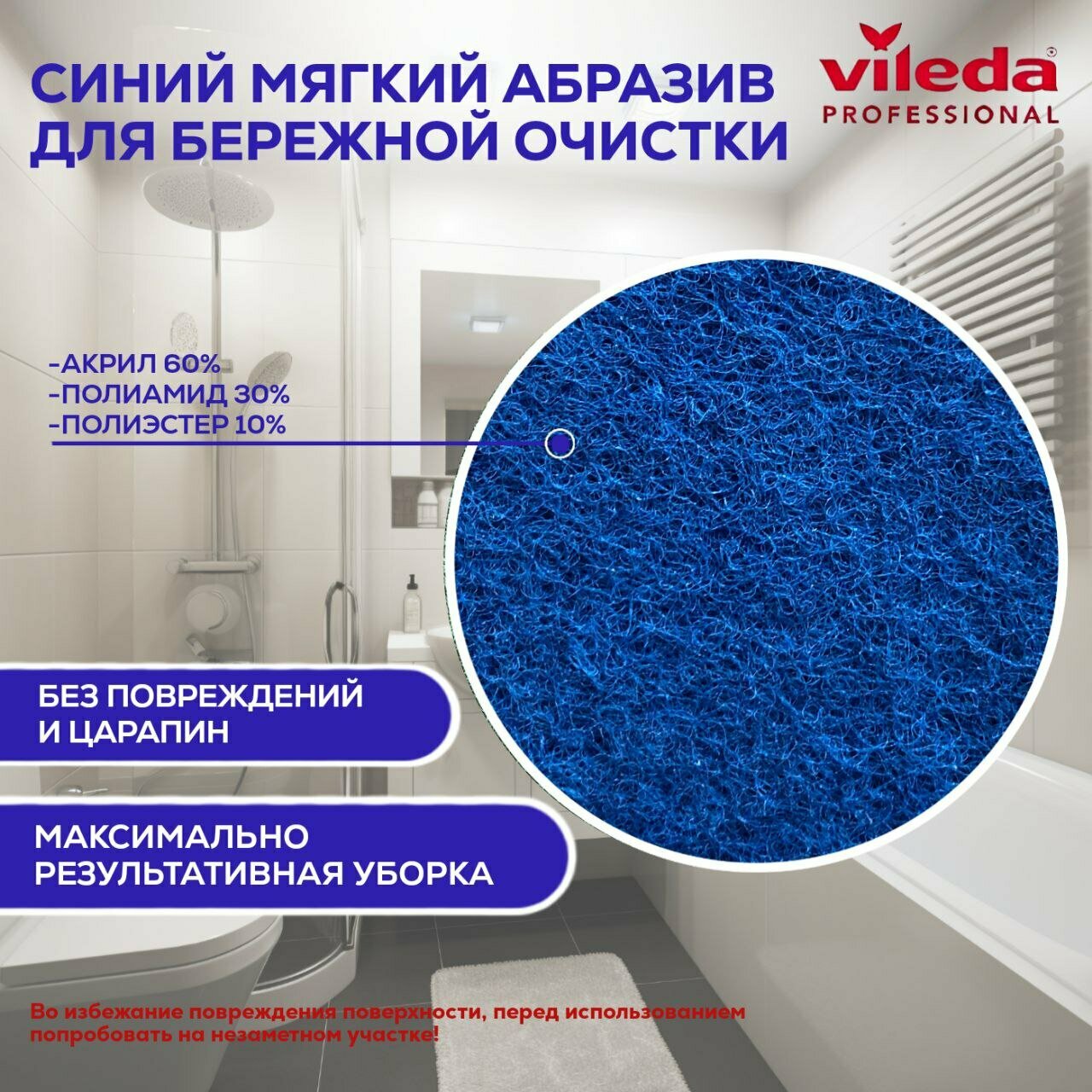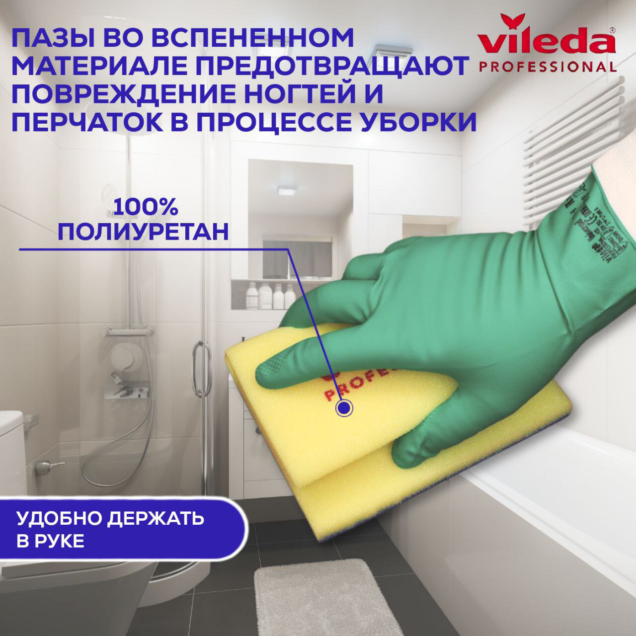 | Особенности | абразивный слой / анатомический вырез / Vileda Professional / Большая / Виледа / деликатная очистка / мягкий абразив / соединение термохимическим способом / увеличенная площадь |