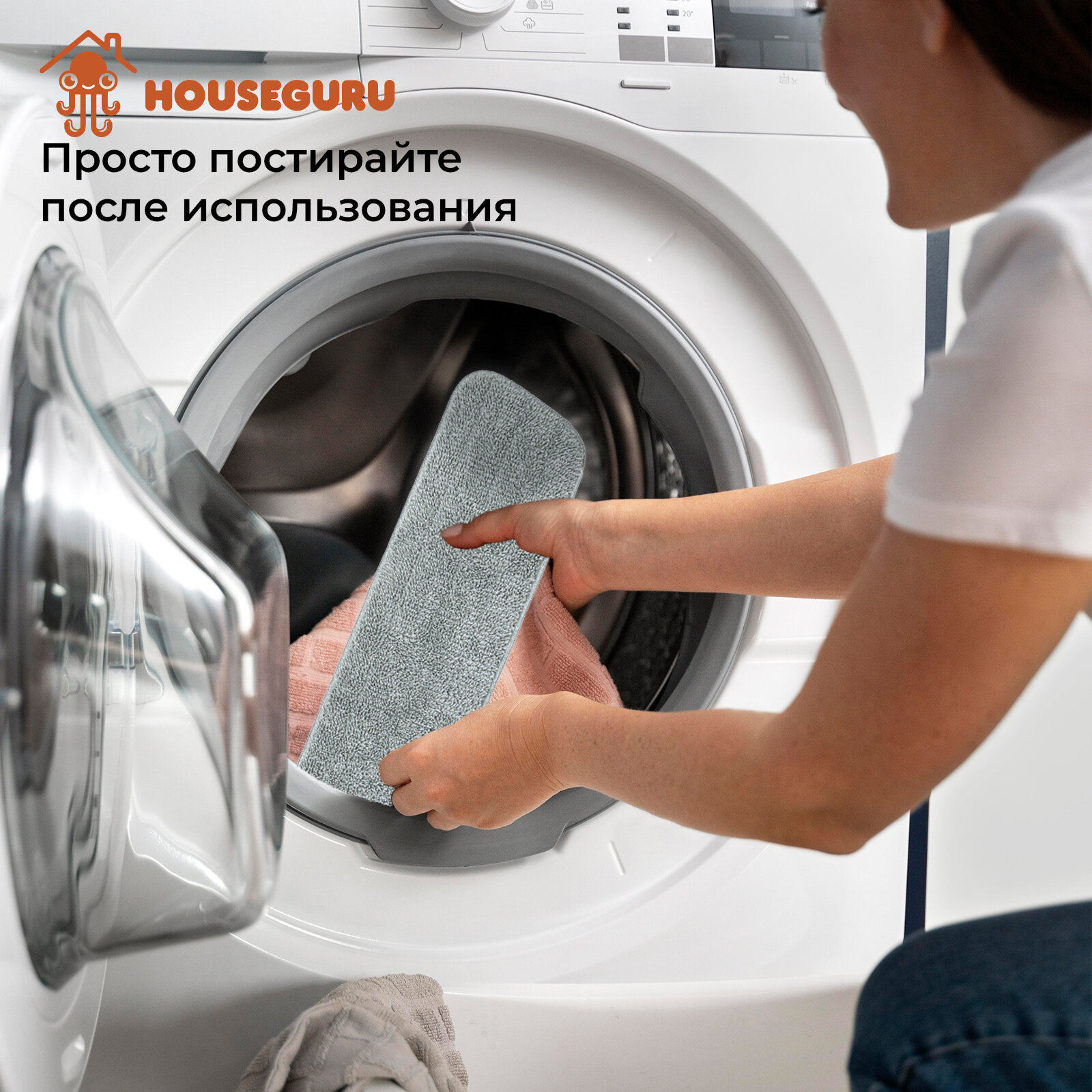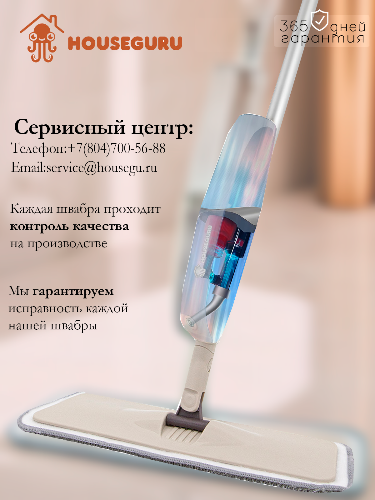 Швабра HOUSEGURU бежевая с распылителем, 2 насадки из микрофирбы, скребок, салфетка интересное: