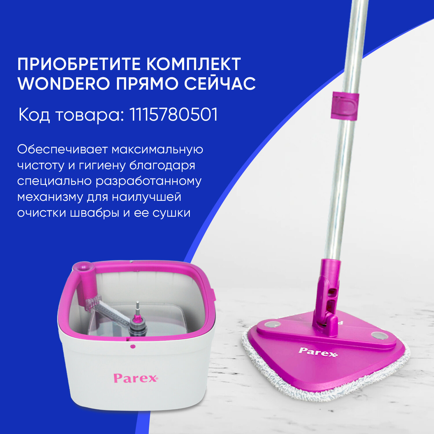 Насадка на швабру Parex Wondero 360° сменная из микрофибры для уборки и мытья полов, 1 шт интересное: