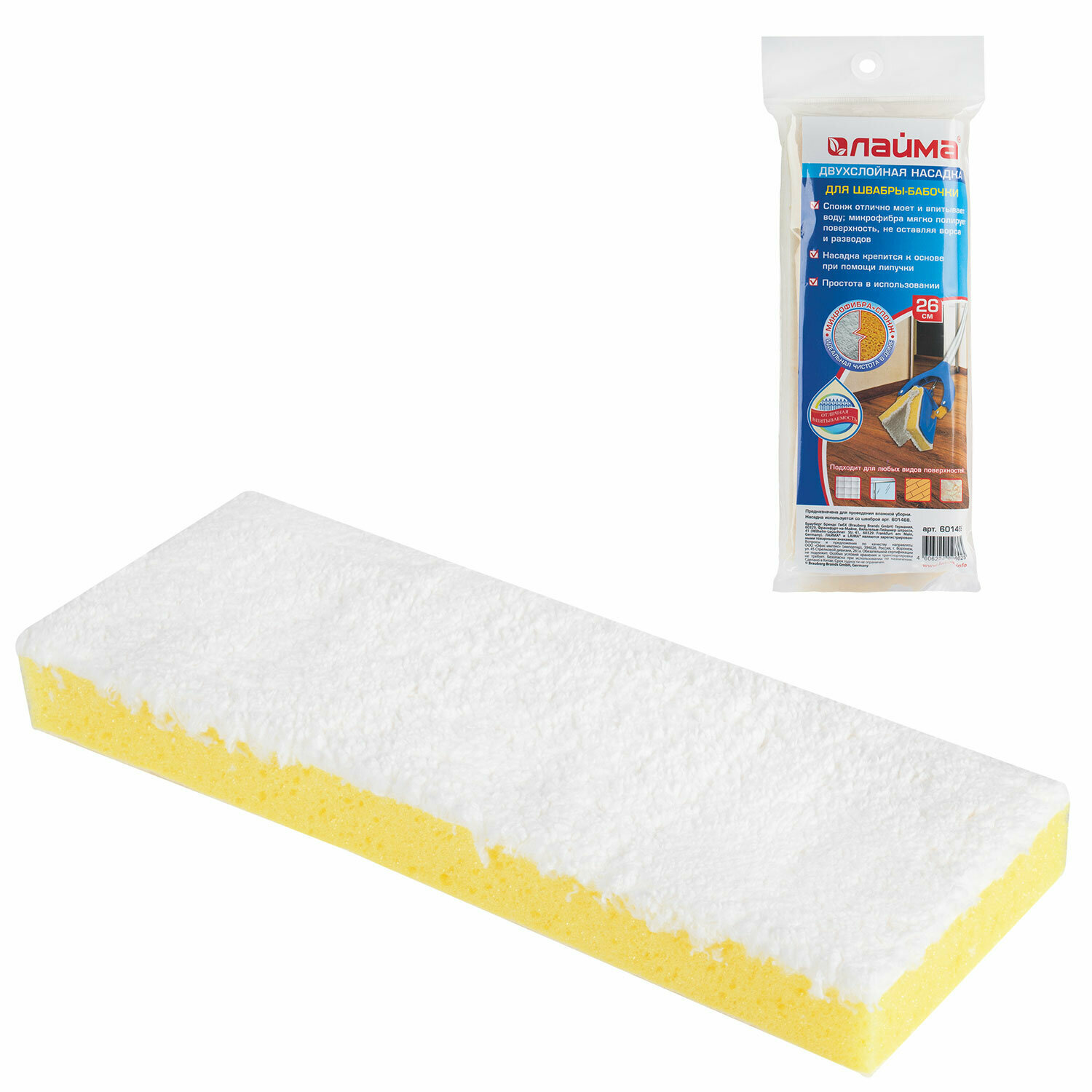 Насадка для швабры Лайма (МОП для швабры самоотжимной "Бабочка", спонж/микрофибра 26 см, на липучке) интересное: