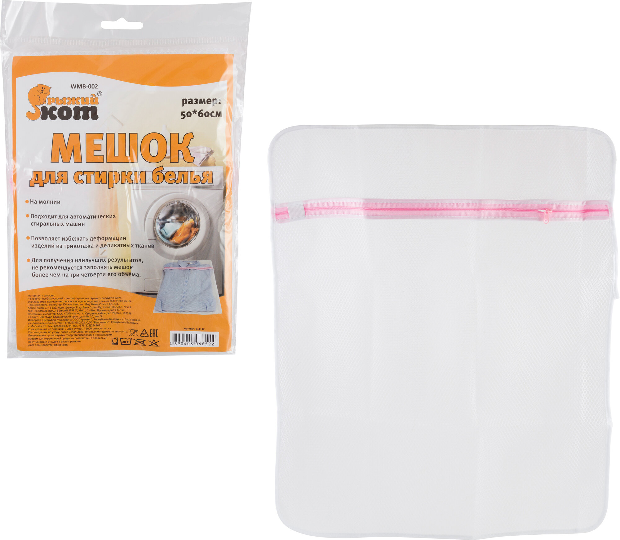 | Подробная комплектация | Мешок для стирки белья РЫЖИЙ КОТ, 50х60 см |