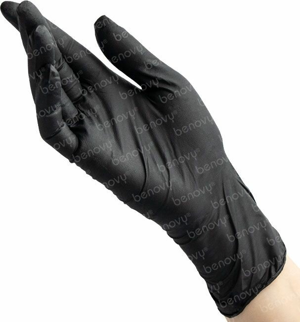 Перчатки нитриловые смотровые 50 пар (100 шт.), размер M (средний), черные, BENOVY Nitrile Chlorinated