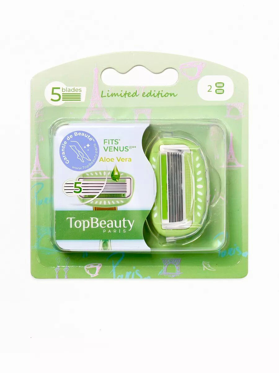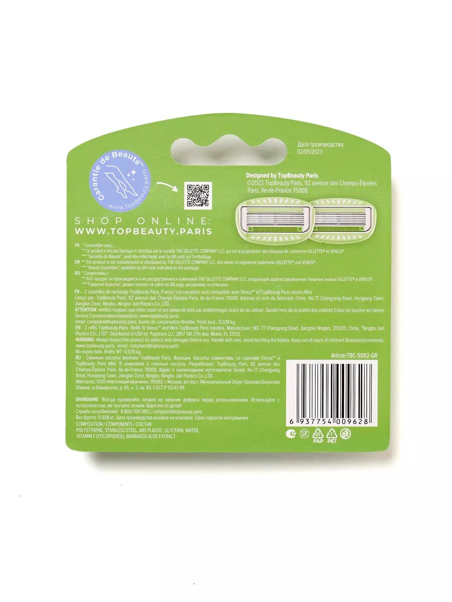 Купить Кассеты для бритвенных станков TopBeauty Paris Cменные женские, 5 лезвий, зеленый цвет, совместимы с Venus, 2 шт