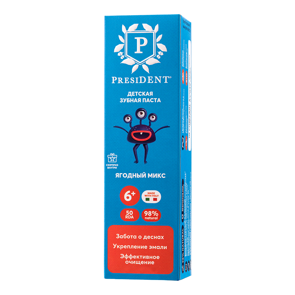 Зубная паста детская President Ягодный микс 6+, 50 г интересное: