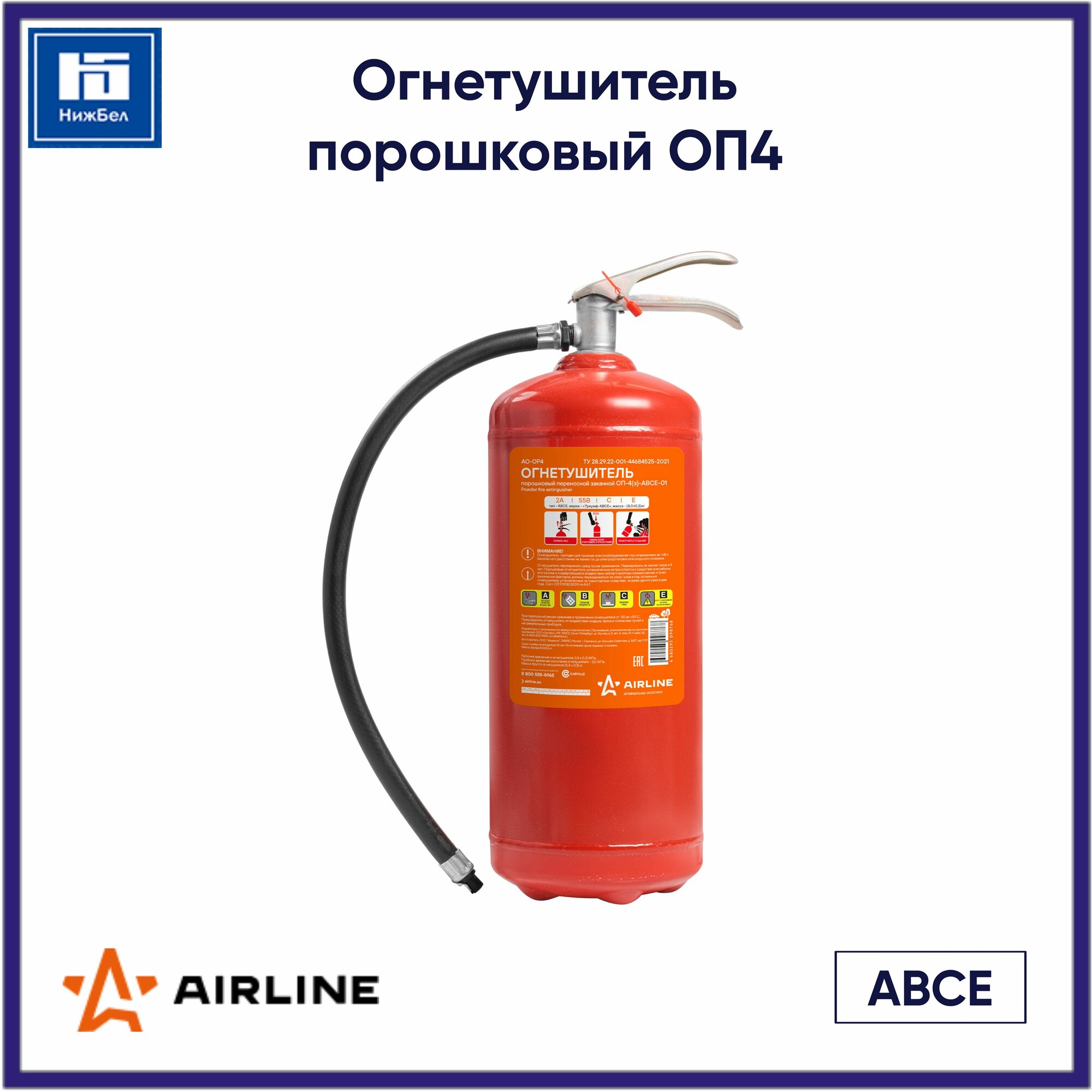 Огнетушитель Порошковый Оп4 Abce (Ao-Op4) AIRLINE арт. ao-op4
